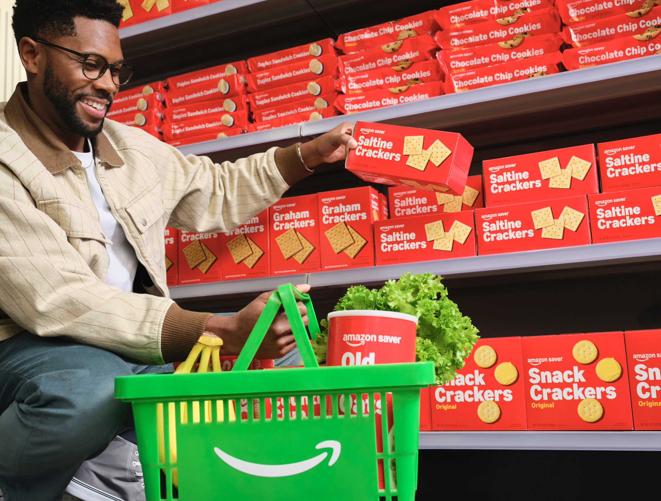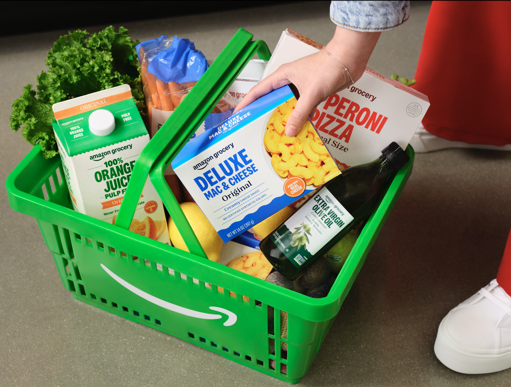 Full basket highlighting Amazon private brands